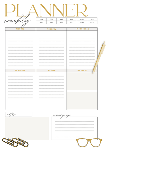 Stay organized in style with this bold and unapologetically chic golden weekly planner. Designed for those who like their schedules as sharp as their attitude, this 40-page 6x9 planner blends sleek black pages with striking gold accents for a look that’s equal parts classy and sassy.